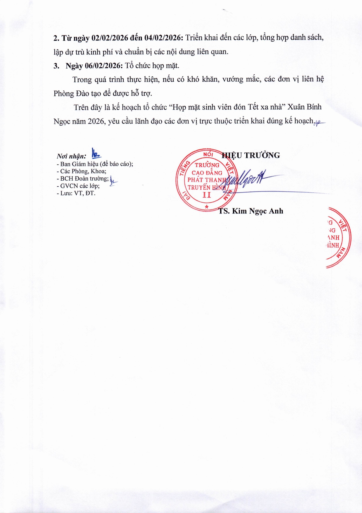 Thông báo về việc sinh viên nghỉ Tết Nguyên đán Bính Ngọ năm 2026