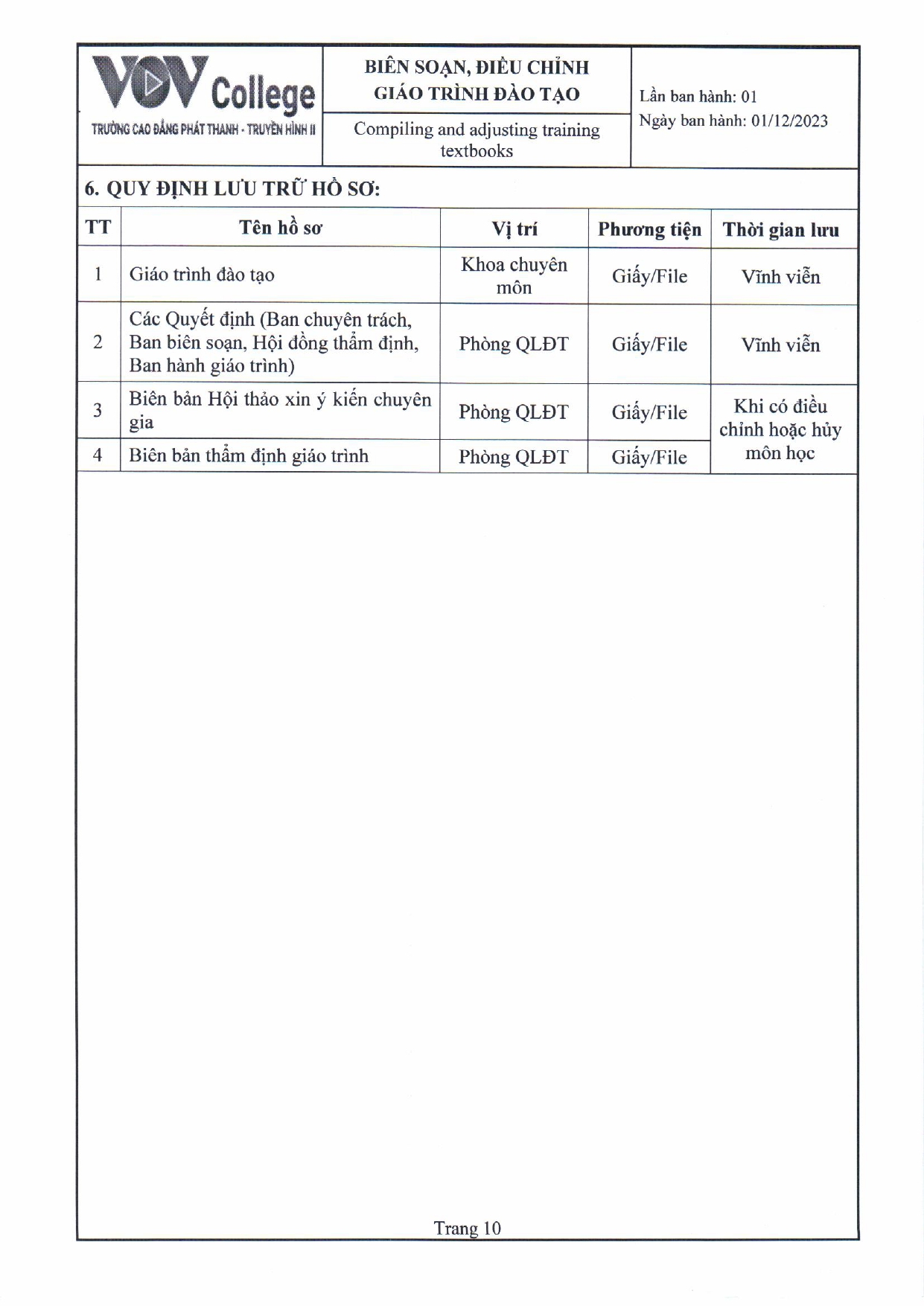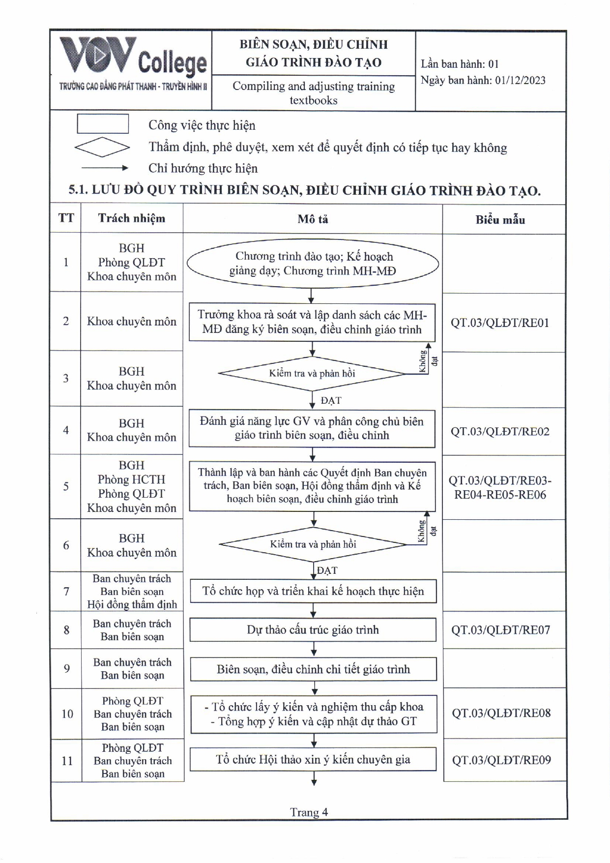 Quy trình biên soạn, điều chỉnh giáo trình đào tạo (Tải về)