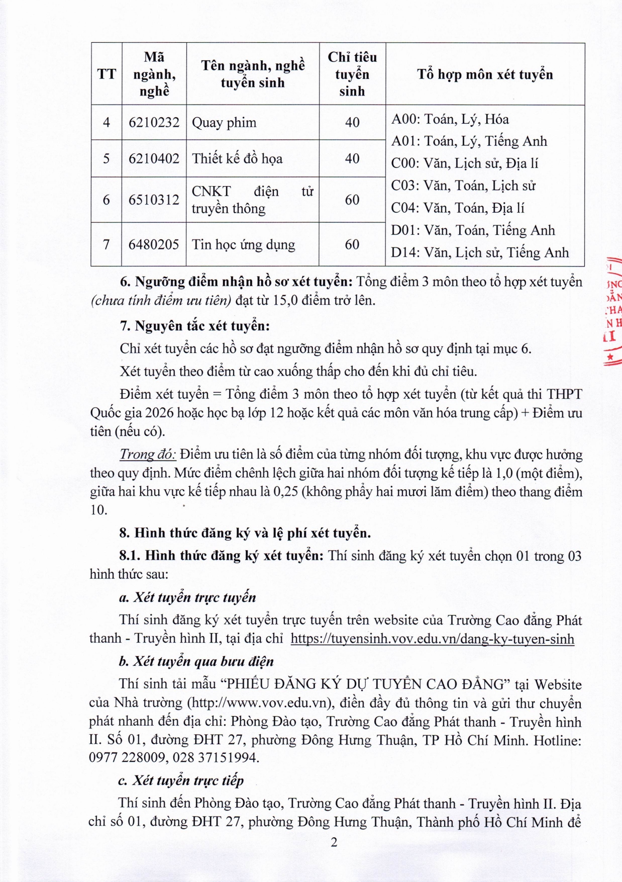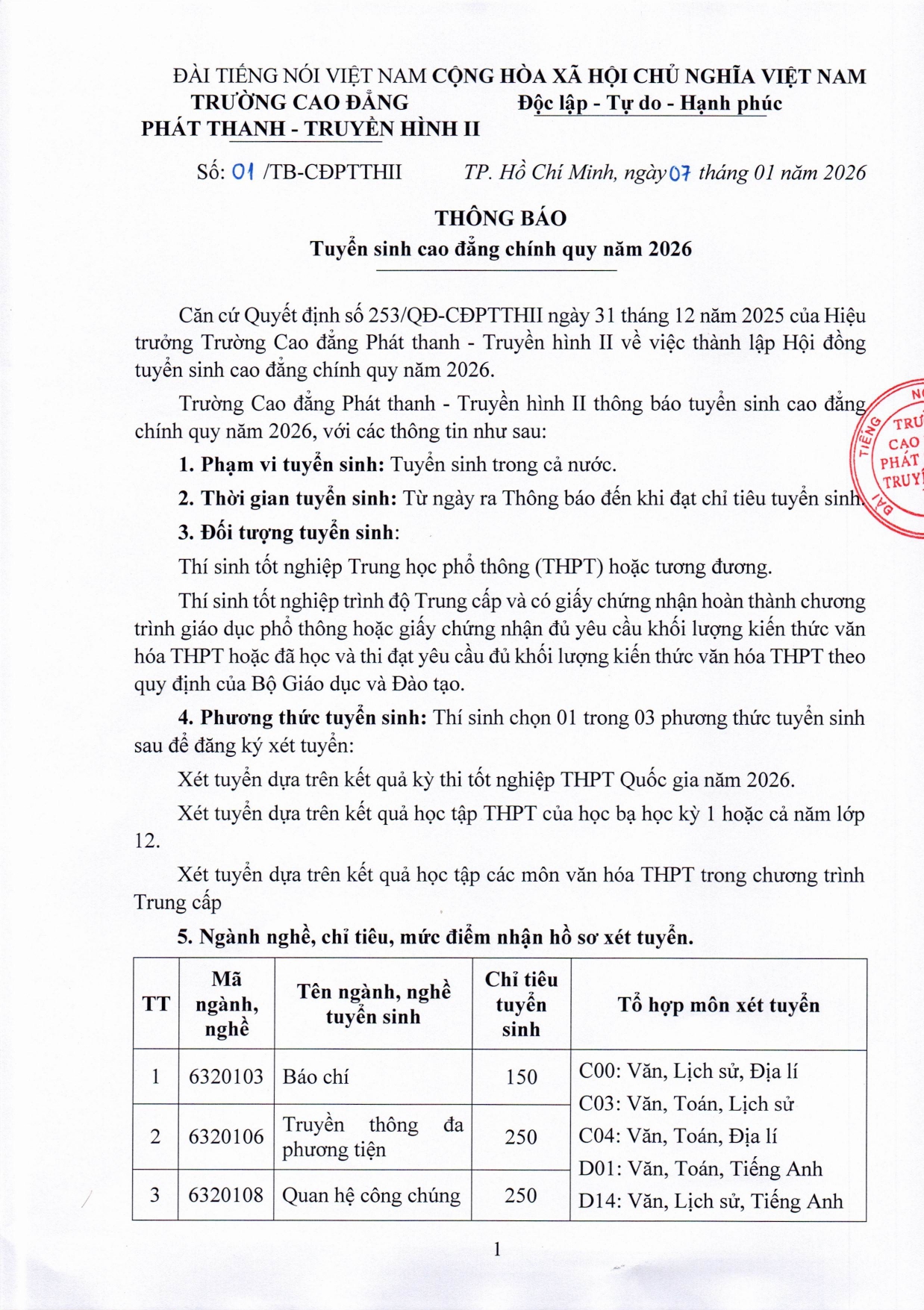 THÔNG TIN TUYỂN SINH 2026 CỦA TRƯỜNG CĐ PHÁT THANH - TRUYỀN HÌNH II (VOV COLLEGE)