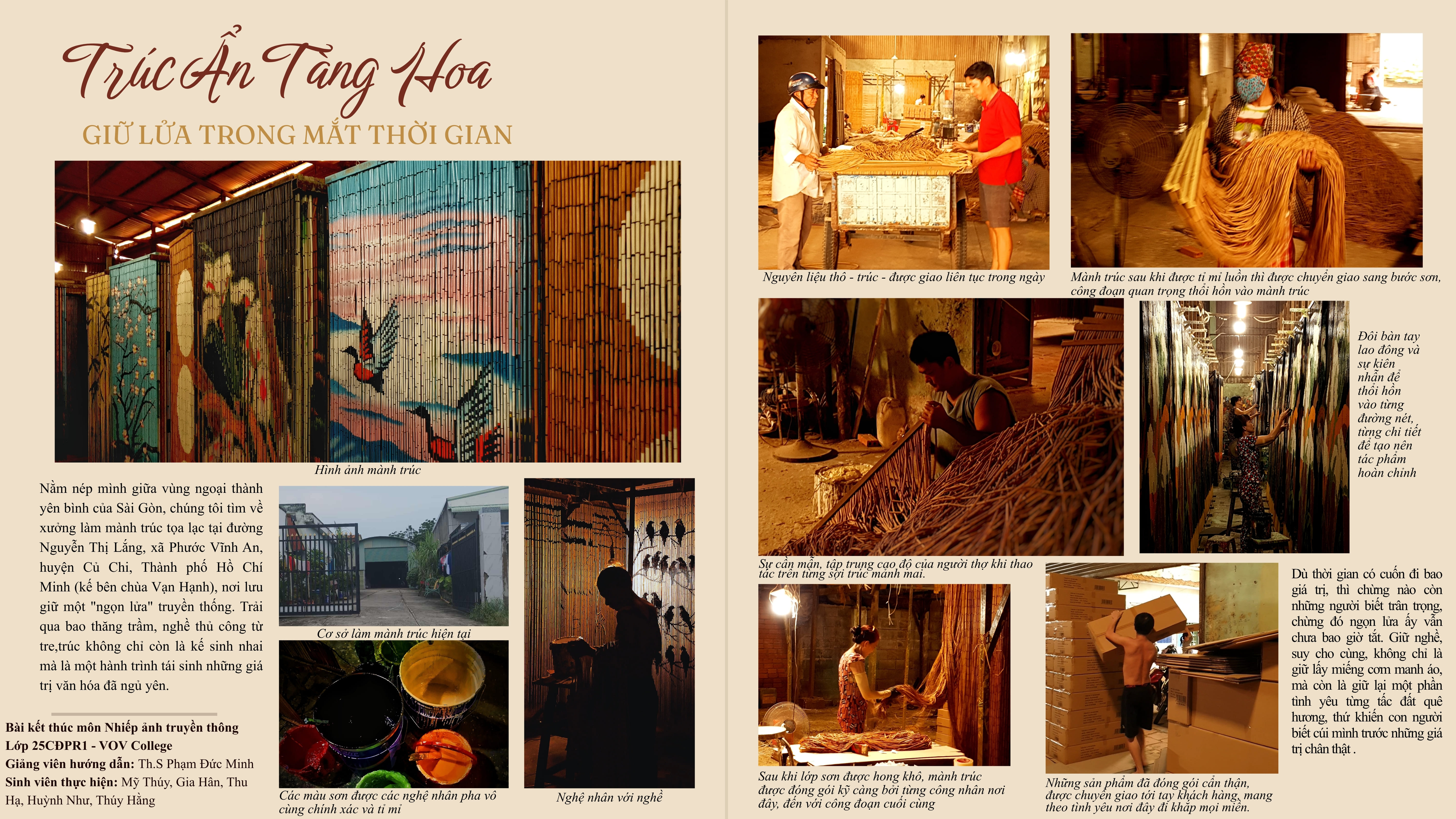 Triển lãm “Người Giữ Lửa” không chỉ là một bài thi kết thúc môn học mà đã trở thành một hành trình nghệ thuật nghiêm túc của thế hệ trẻ, ghi lại những câu chuyện lặng lẽ nhưng đầy sức sống của những người đang ngày đêm gìn giữ nghề truyền thống và bảo tồn hồn cốt dân tộc.