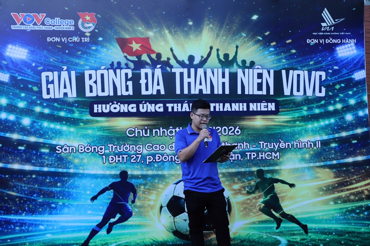 Sáng ngày 29/3, Đoàn Thanh niên Trường Cao đẳng Phát thanh - Truyền hình II tổ chức “Giải bóng đá Thanh niên VOVC 2026” tại sân bóng VOV của Trường Cao đẳng Phát thanh - Truyền hình II, với sự đồng hành của tuổi trẻ Học viện Hàng không Việt Nam.