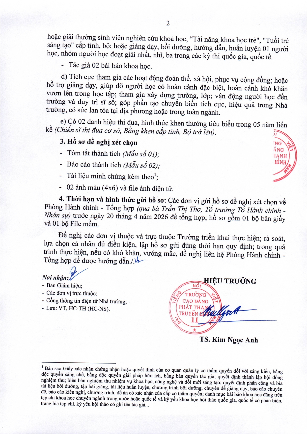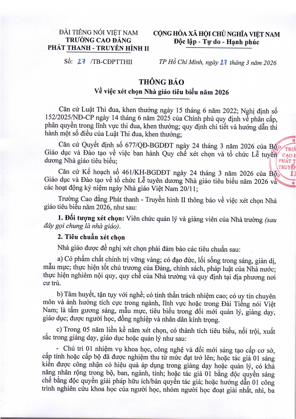 Thông báo về việc xét chọn Nhà giáo tiêu biểu năm 2026