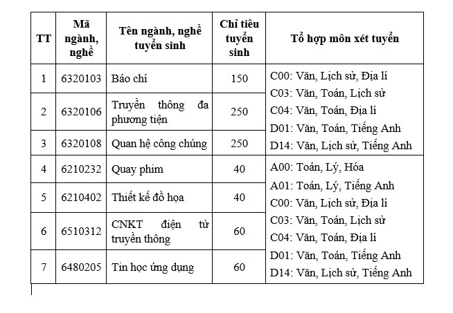 Trường Cao đẳng Phát thanh - Truyền hình II thông báo tuyển sinh cao đẳng chính quy năm 2026, với các thông tin như sau: