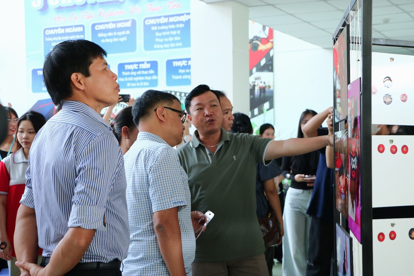 Giảng viên, khách mời và sinh viên Trường Cao đẳng Phát thanh – Truyền hình II cùng tham quan và trao đổi các ấn phẩm ảnh trong Triển lãm "Người Giữ Lửa"