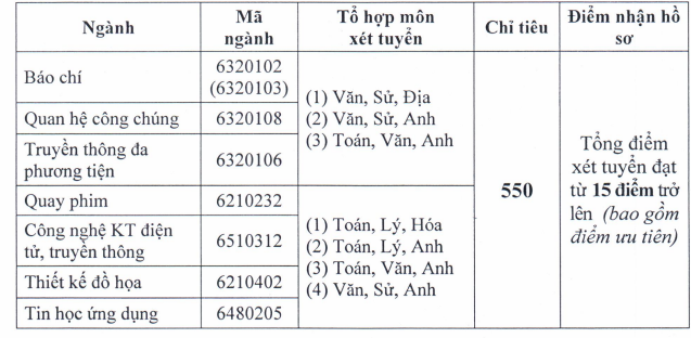 3. Ngành, điểm nhận hồ sơ và chỉ tiêu tuyển sinh: