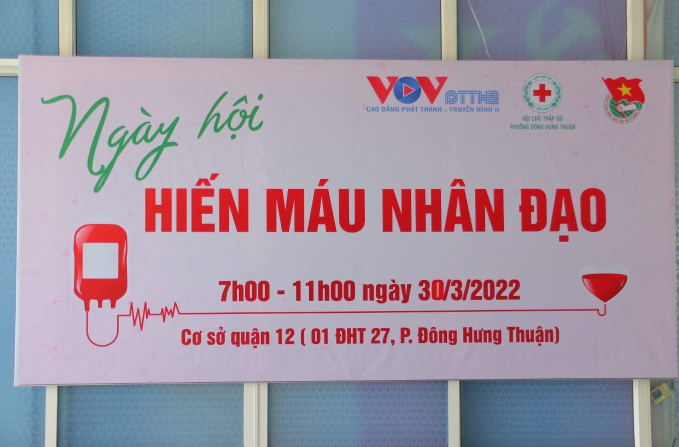Sáng ngày 30/3 Đoàn trường Cao đẳng Phát thanh – Truyền hình II kết hợp cùng với hội Chữ Thập Đỏ phường Đông Hưng Thuận và Trung tâm hiến máu nhân đạo TP Hồ Chí Minh, đã tổ chức Ngày hội “Hiến máu nhân đạo” được đông đảo cán bộ, công nhân viên chức và các bạn sinh viên tham gia.