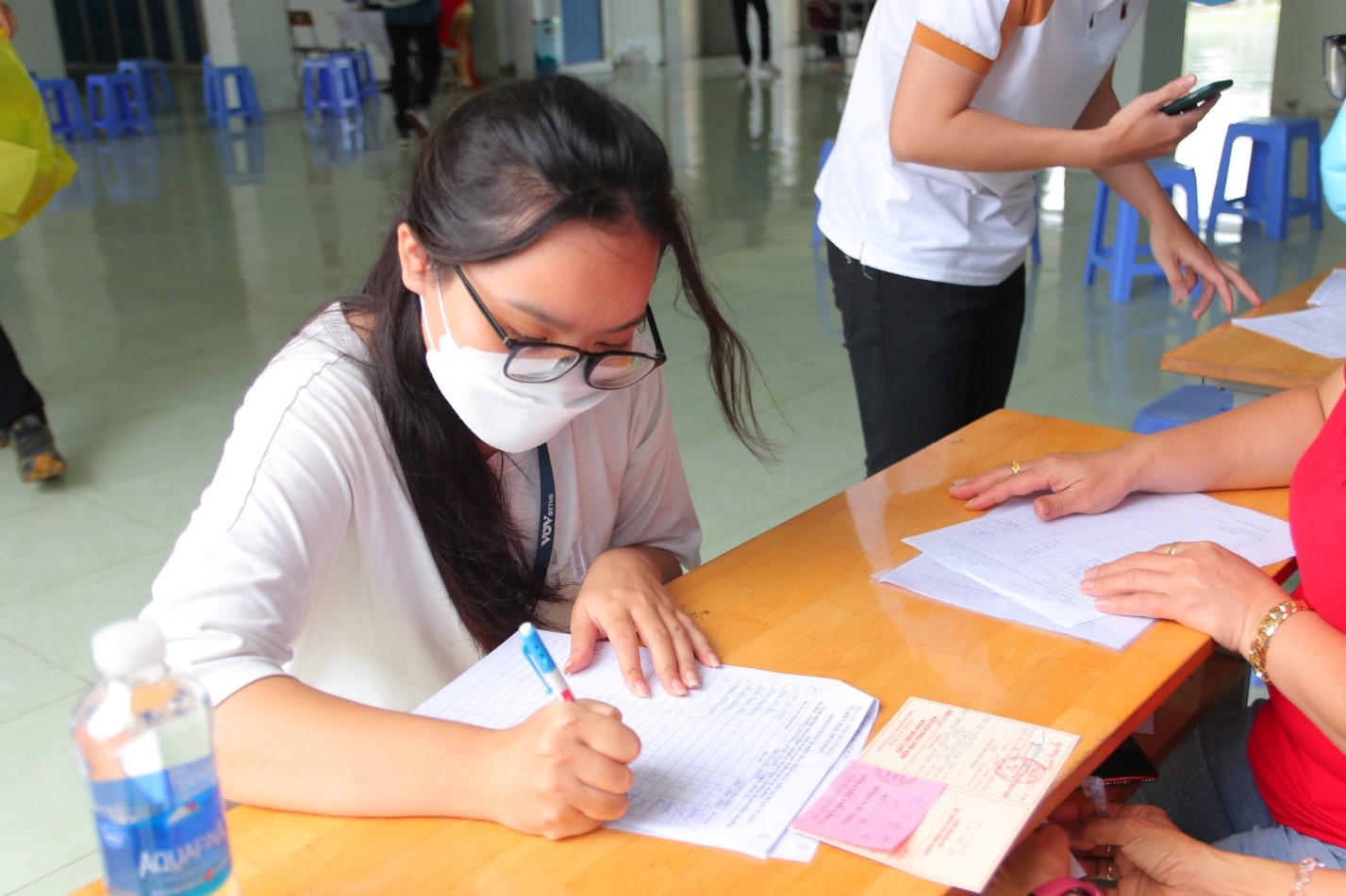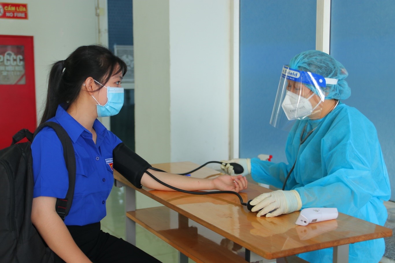 Cán bộ, nhân viên và sinh viên trường VOV College khám sàn lọc trước khi hiến máu